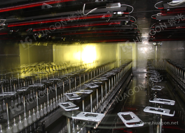 上料-手動靜電除塵-素材預熱-自動靜電除塵-自動底漆噴涂-表干-自動面漆噴涂-靜置-烘烤-冷卻-下料