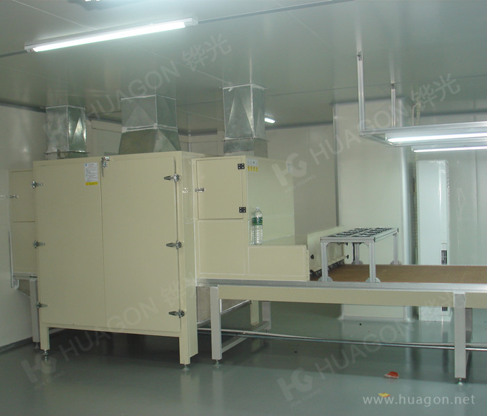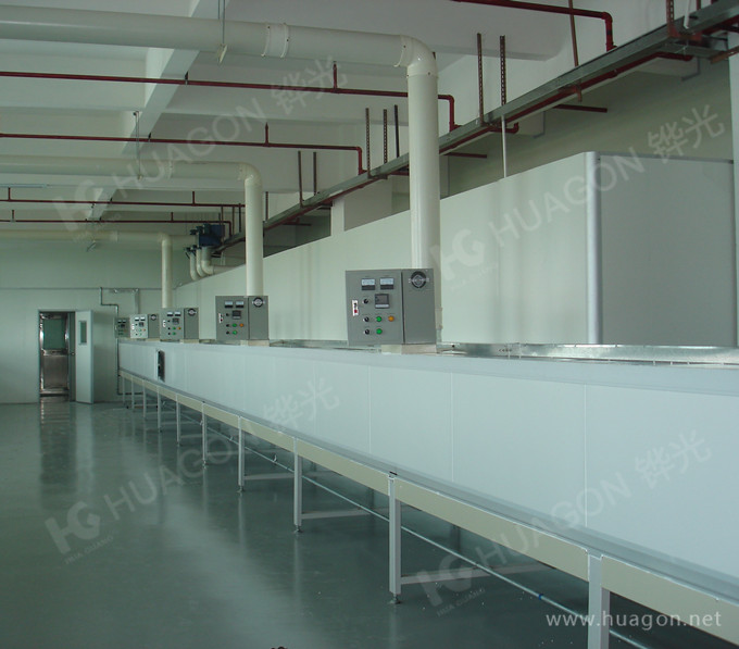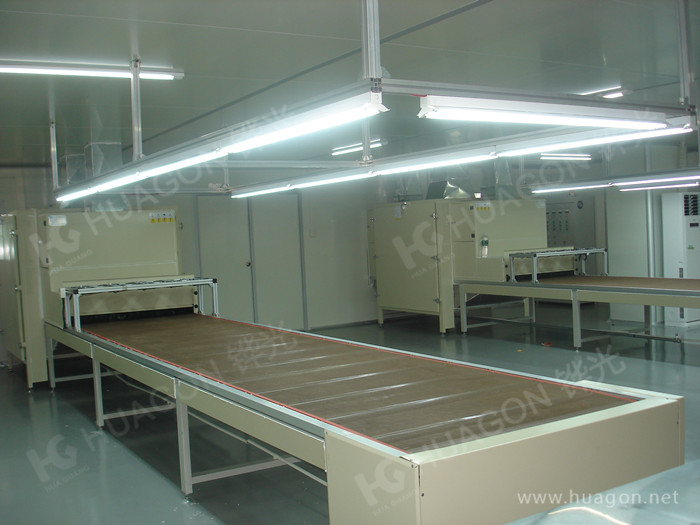 上料-手動靜電除塵-素材預熱-多任務站手動/自動噴涂-靜置-隧道式烘烤-UV光固化-冷卻-下料